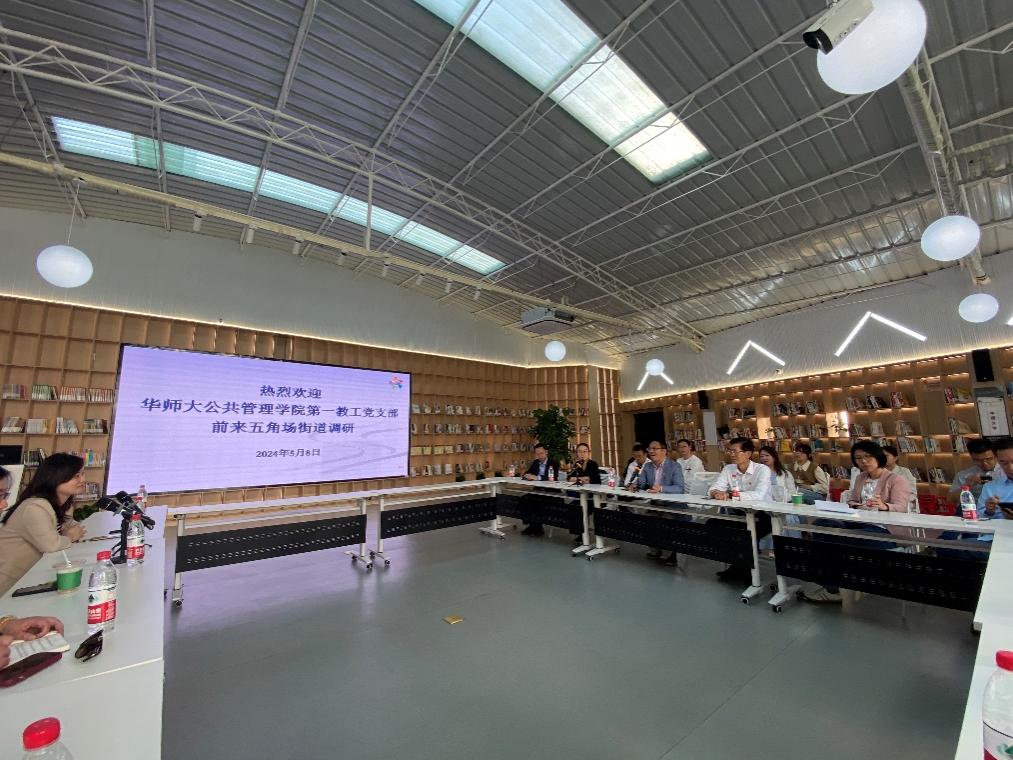 为加强学院党员师生对现代社区治理的理解和实践能力,推动党建工作与学科建设深度融合,在h动漫 党委副书记(主持工作)高恩新和副书记王婧的带领下,教工第一党支部联合本硕党支部共同组织党员师生于5月8日下午同赴杨浦区五角场街道党工委开展标杆社区治理学习交流活动。