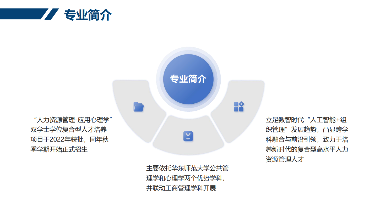 “人力资源管理-应用心理学”双学位项目专业课程设置主要包括研究与方法模块、人力资源管理模块、心理学模块、人资-心理融合模块以及综合拓展模块共5个课程模块,代表性课程包括: