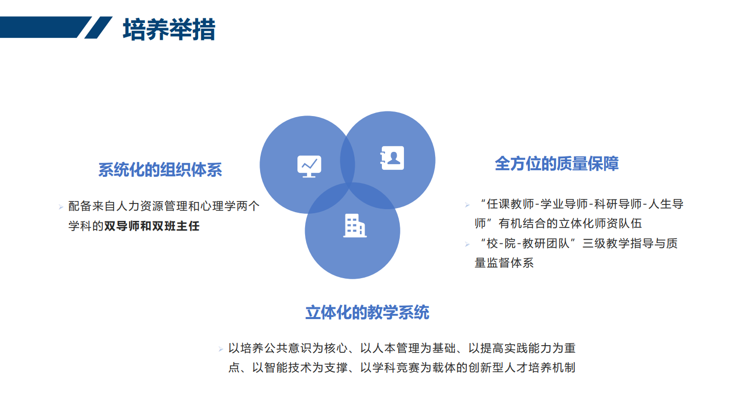 ①系统化的组织体系。以人力资源管理专业与应用心理学专业为依托,建立本科生双导师制和双班主任制,选拔来自两个专业的优秀教师,为学生配备双导师,共同指导学生的学习和科创活动。