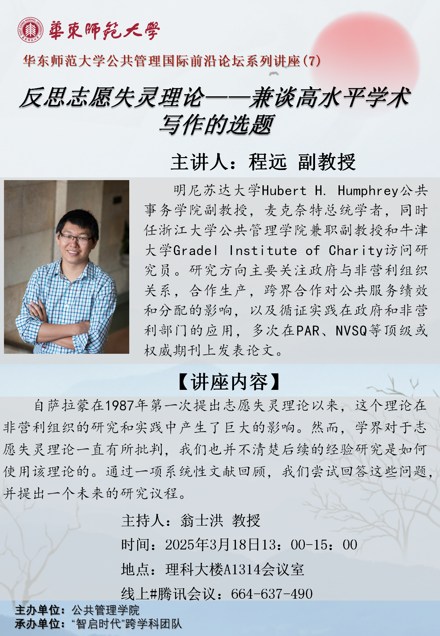 讲座预告 | 反思志愿失灵理论--兼谈高水平学术写作的选题