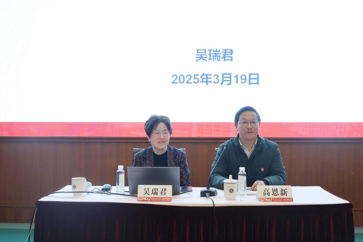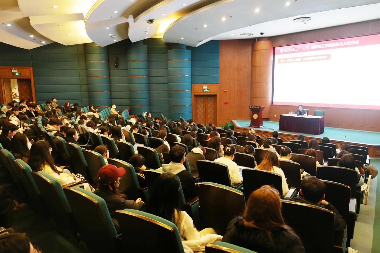 2025年3月19日,h动漫 党委在普陀校区逸夫楼一楼报告厅举行理论学习(扩大)会议暨师生党员学习全国“两会”精神辅导报告活动。本次会议邀请全国政协委员、h动漫 图书馆馆长吴瑞君教授作题为《破局与重构 着力塑造发展新动能》的专题报告。学院党政班子成员、全体教师、学生党员、入党积极分子、学生骨干等150余人参加主题教育学习活动。学习活动由党委书记高恩新主持。