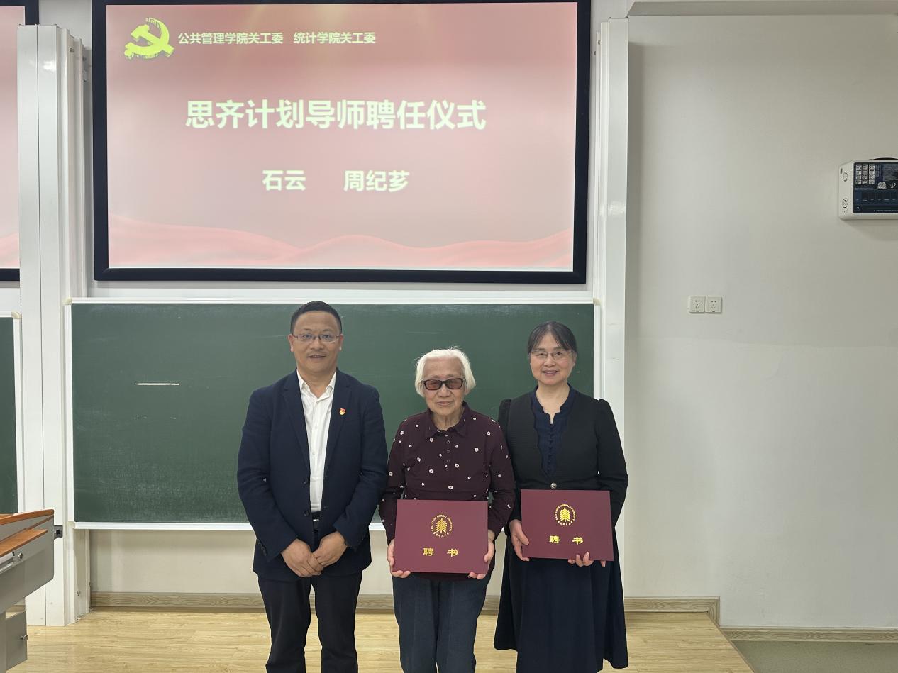 为了更好的帮助和指导青年学子,h动漫 关工委和统计学院关工委分别为新聘任导师和委员颁发聘书,高恩新为石云、周纪芗两位老师颁发思齐计划导师聘书。