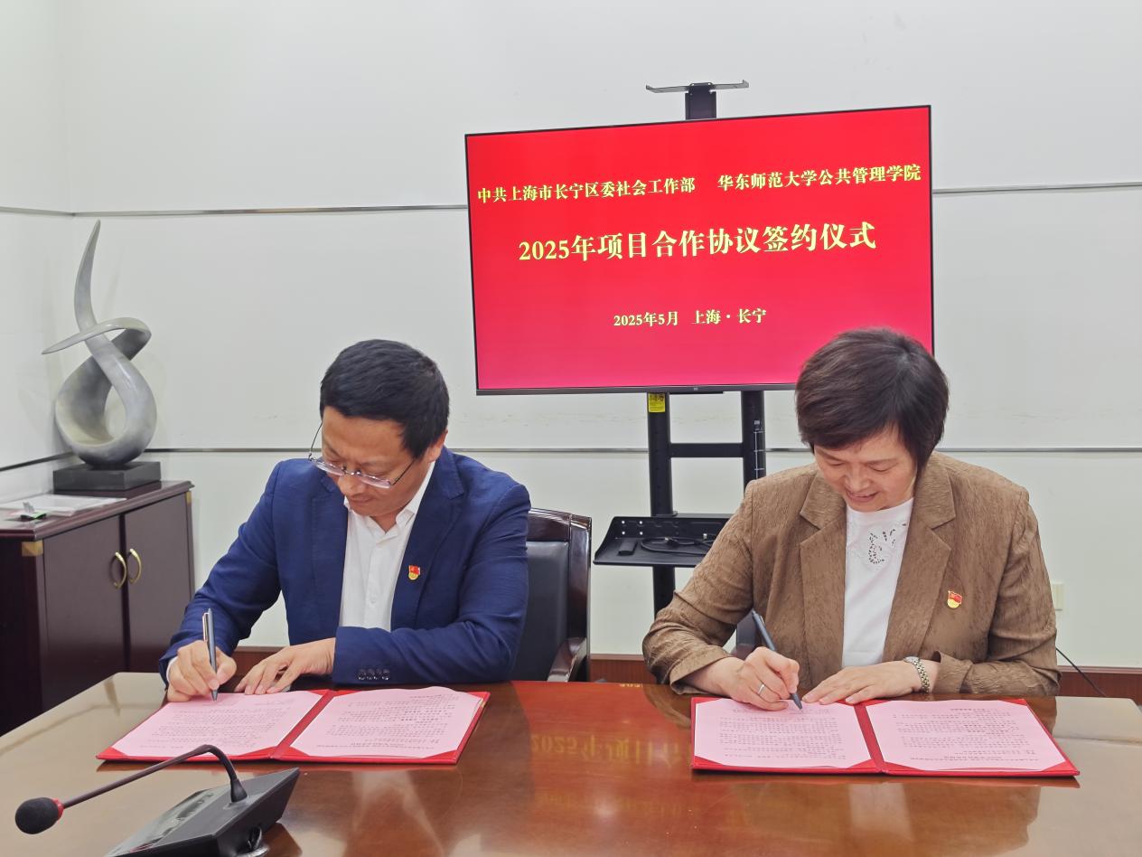 活动伊始,h动漫 党委书记高恩新与区委社会工作部部长陆敏代表双方签署合作协议,政校双方围绕长宁区社会治理现代化开启合作新征程。