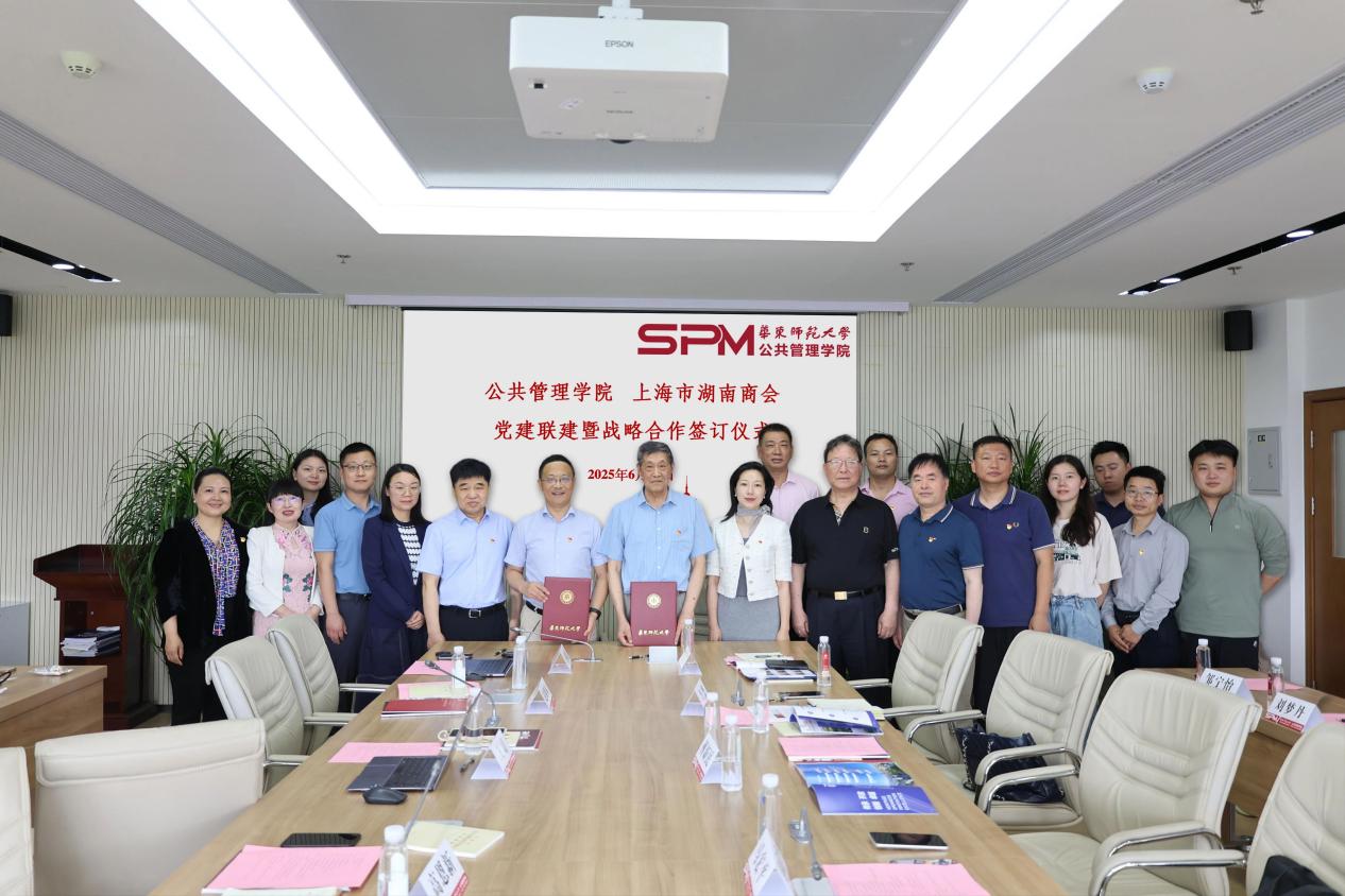 2025年6月12日,上海市湖南商会、h动漫 举行党建联建合作协议签约仪式暨学习贯彻中央八项规定精神联组学习活动。湖南省驻沪单位党委副书记(主持工作)、湖南省政府驻上海办事处副主任(主持工作)马宏平,机关党委专职副书记李薇,交流合作处副处长苏胜鹏及商会代表,h动漫 党委书记高恩新,副书记王婧,党委委员、副院长王法硕,劳动与社会保障系系主任曹艳春,MPA中心副主任赵继娣,专职组织员王祖亮等共同出席此次活动。会议由党委副书记王婧主持。