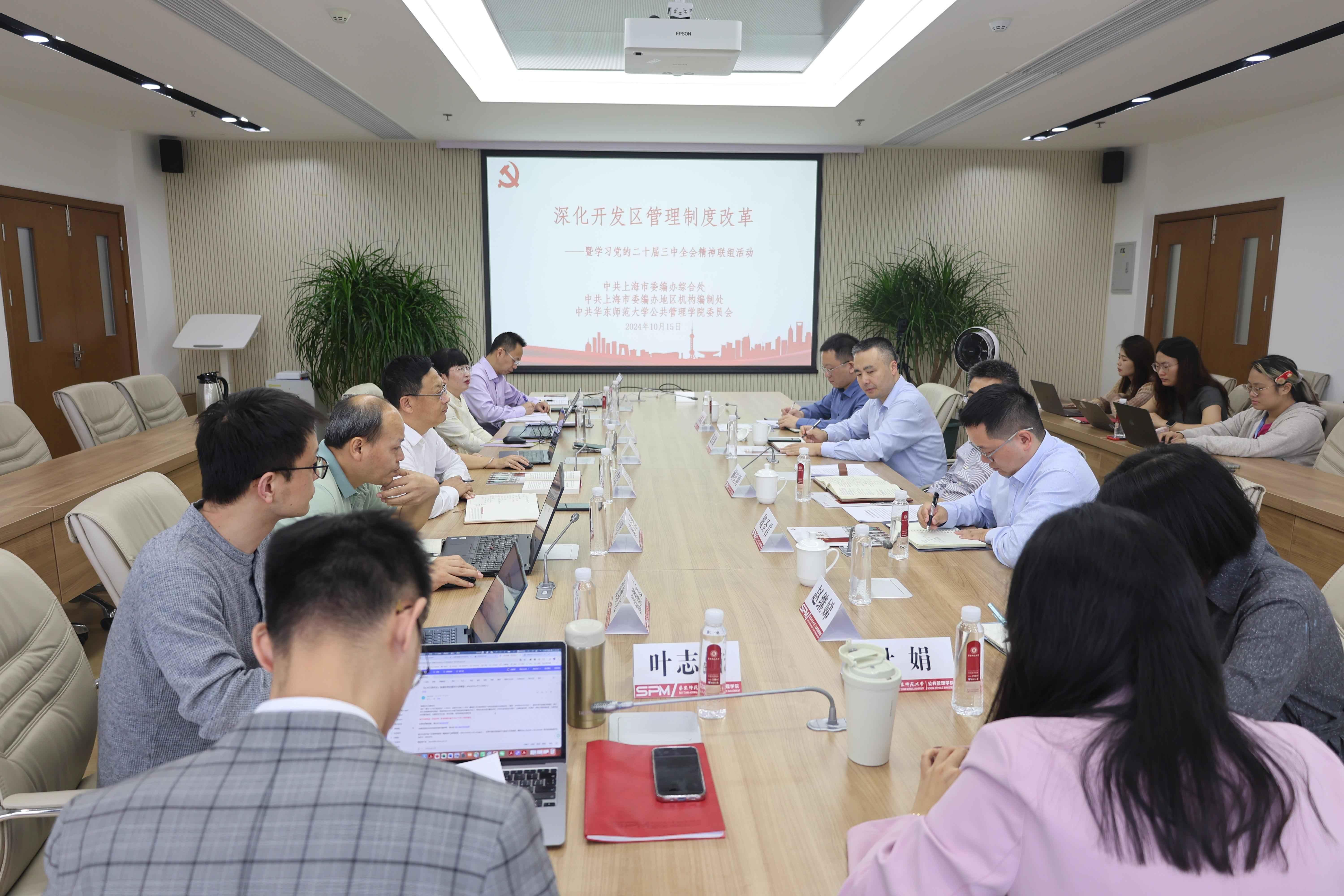2024年10月15日,h动漫 党委与中共上海市委编办综合处、地区机构编制处在理科大楼1314会议室围绕“深化开发区管理体制改革”开展学习党的二十届三中全会精神联组活动。会议由h动漫 党委副书记(主持工作)高恩新主持。